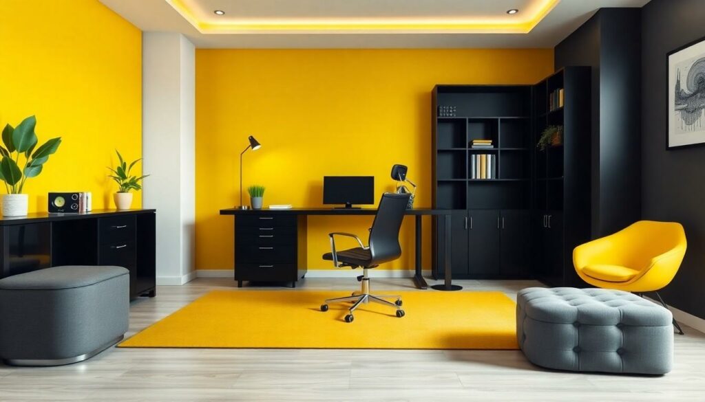 Black offers sophistication and elegance. This color promotes focus and concentration, while preventing distractions. Using black as the dominant color supports a sleek environment that fosters motivation. Accents in bright colors like yellow or green can energize the space, balancing black’s intensity. Combining these shades stimulates creativity and positivity throughout the workspace.